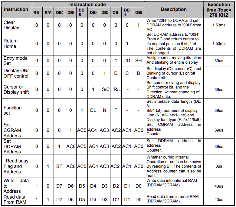 LCD 16x2 Commands/Instructions